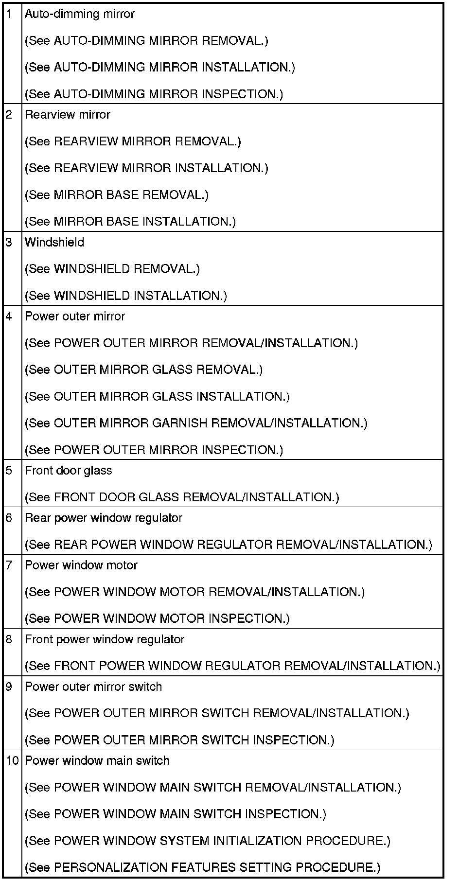 GLASS/WINDOWS/MIRRORS LOCATION INDEX