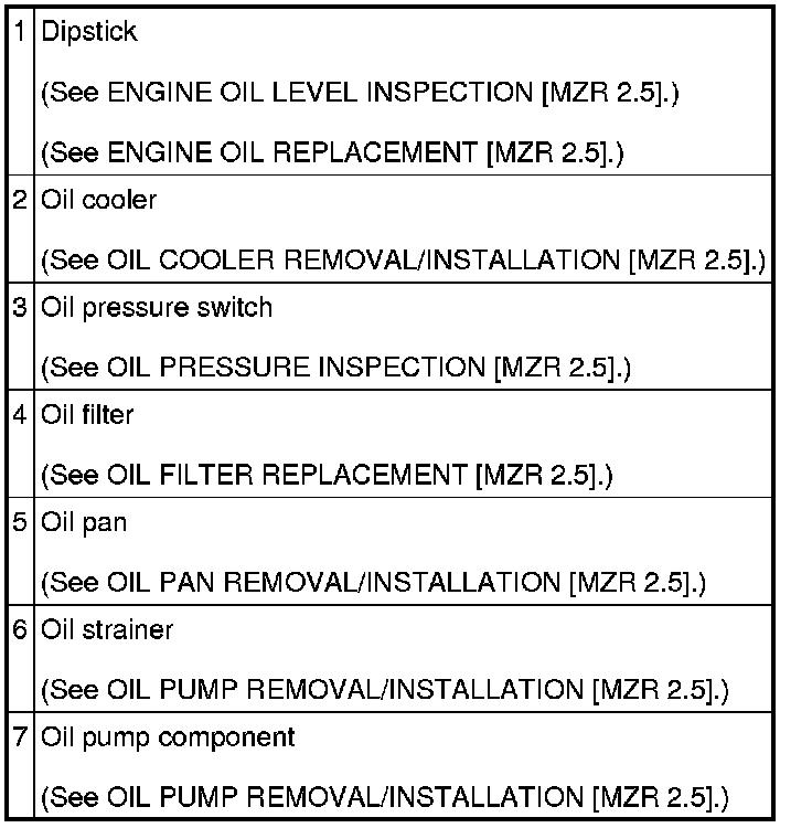 LUBRICATION SYSTEM LOCATION INDEX [MZR 2.5]
