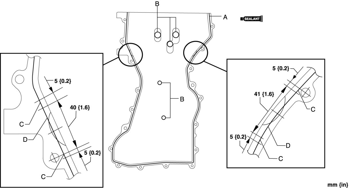 - Install the engine front cover before the applied silicone sealant starts to harden.
