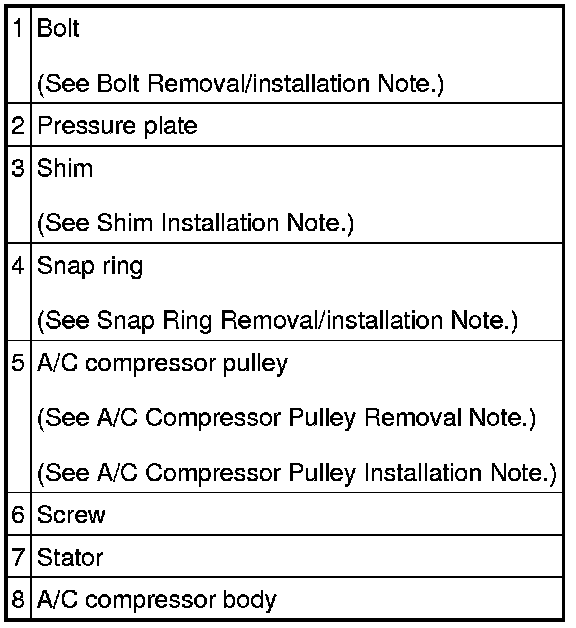 1. When removing or installing the bolt, lock the A/C compressor pulley against rotation using the following procedure.