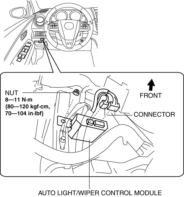 - When replacing the auto light/wiper control module, the configuration procedure must be performed before removing the auto light/wiper control module. Replacing the auto light/wiper control module without performing the configuration procedure will result in system malfunction.
