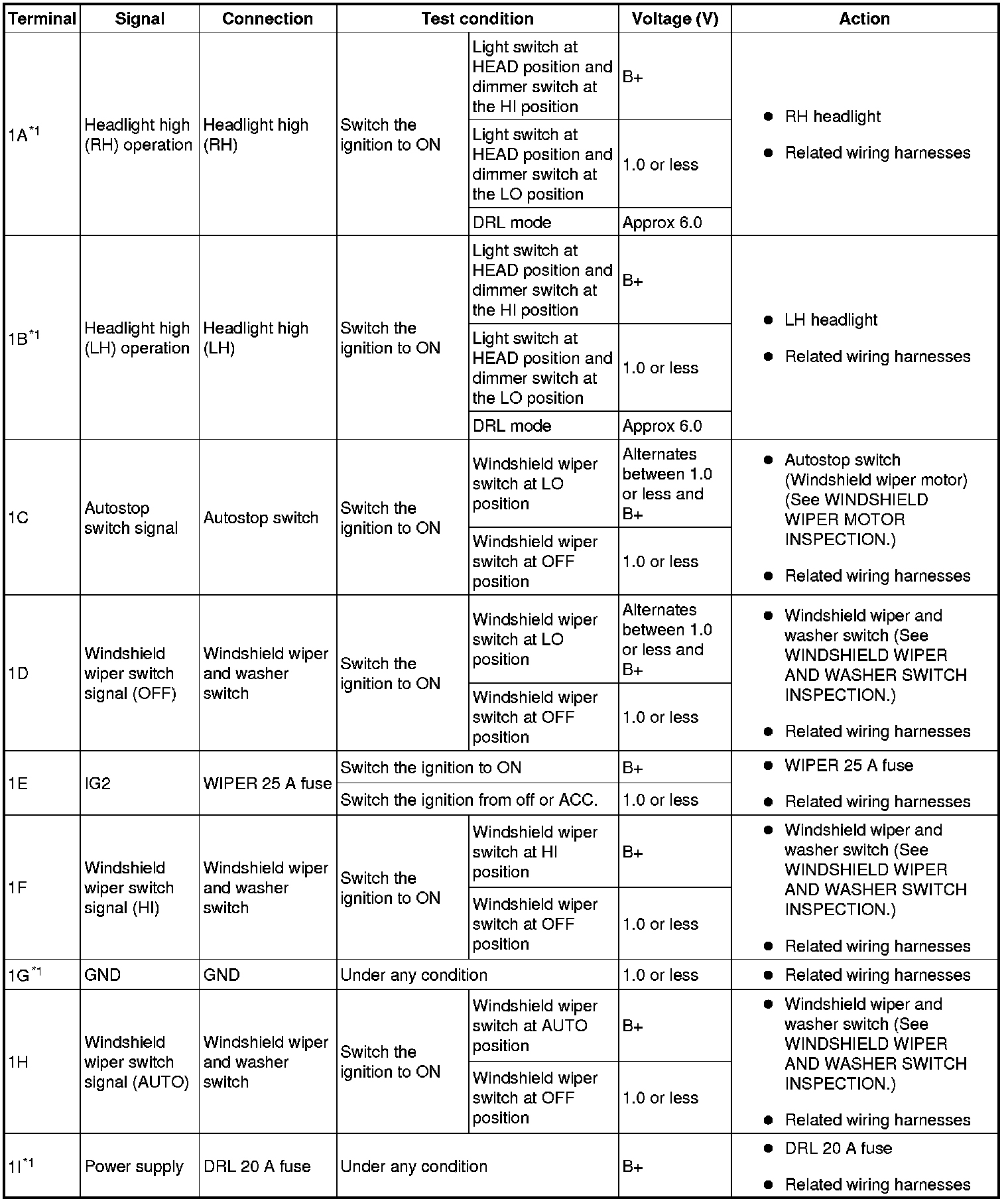 Terminal Voltage List (Reference)