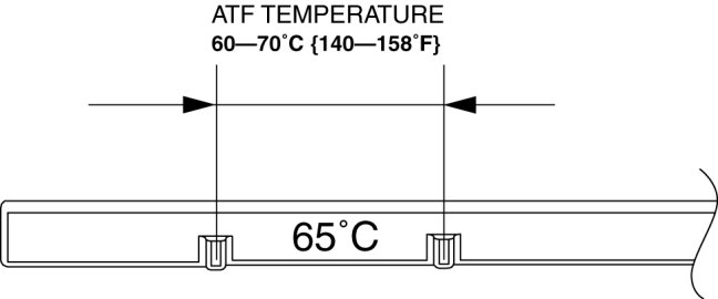 - If a final inspection of the ATF level is performed without driving the vehicle, or the ATF amount is inspected while the ATF temperature is not at about 60-70 °C {140-158 °F}, the transaxle could be damaged because the ATF level inspection would be incorrect.