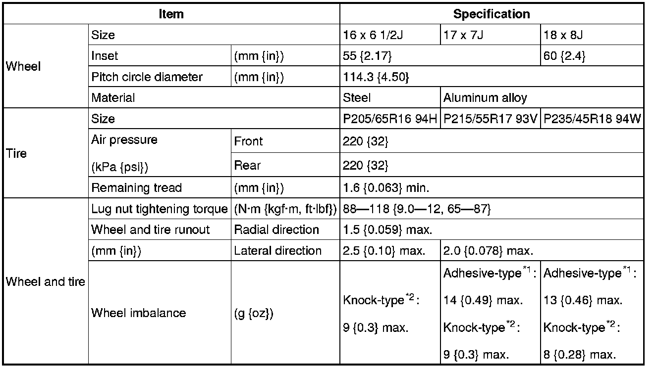 WHEEL AND TIRE SPECIFICATION