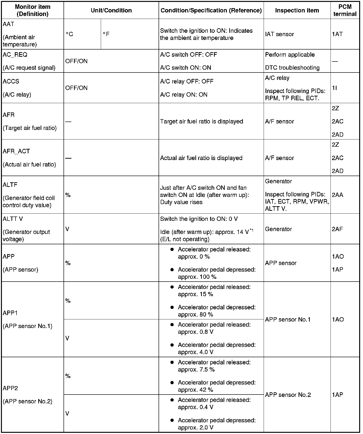 - Following PIDs are for the ATX models. If inspects for following PIDs, On-Board Diagnostic System PID/Data Monitor Inspection