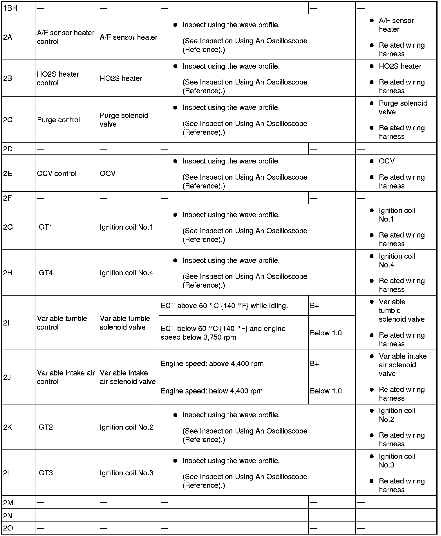 - IGT3(ignition coil No.3): 2L(+)-body ground(-)