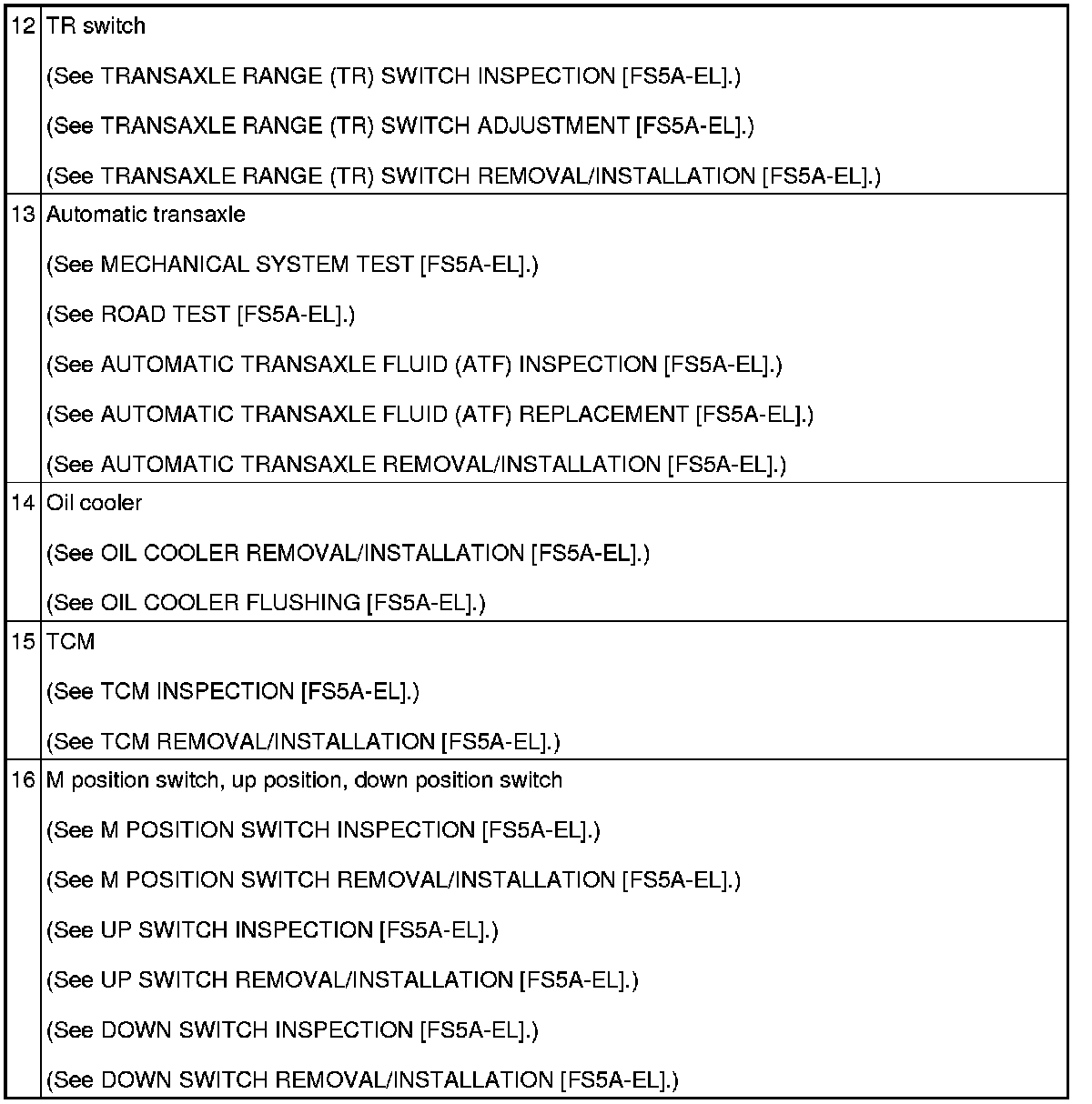 AUTOMATIC TRANSAXLE LOCATION INDEX [FS5A-EL]