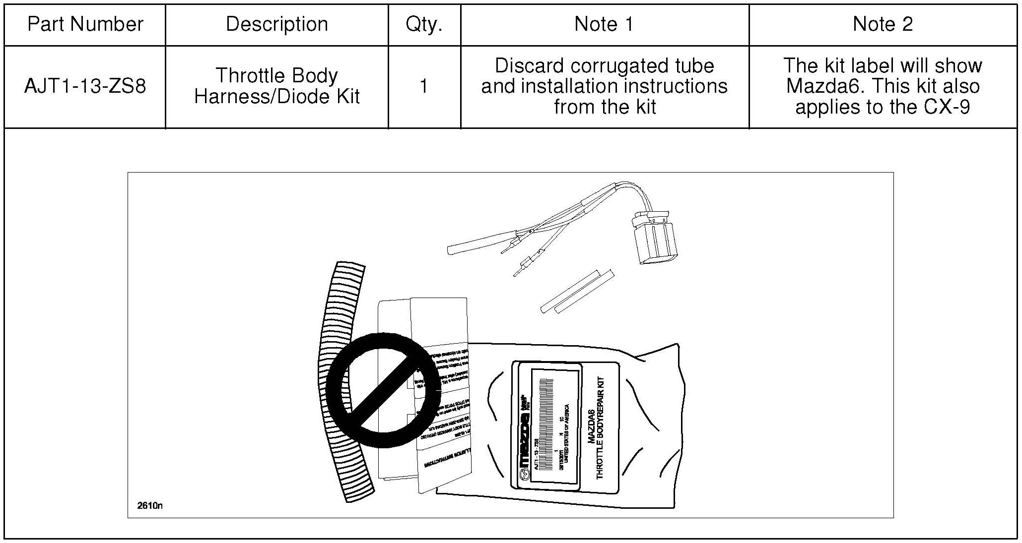 2. Install throttle body harness/diode (AJT1-13-Z58). Refer to "Throttle Body Harness (with Diode) Installation Procedure".