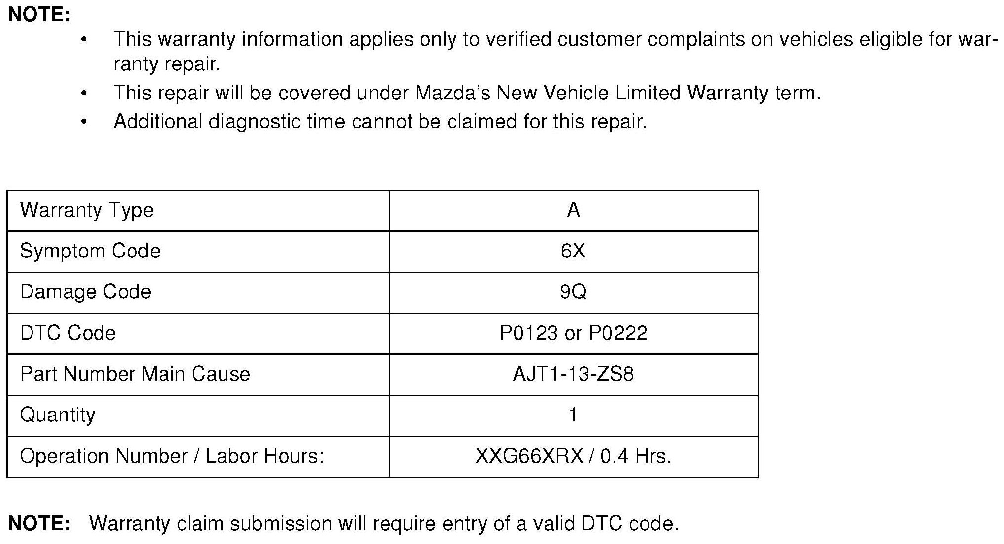 Some vehicles may experience a MIL illumination with DTCs P0123 and/or P0222 stored in memory.