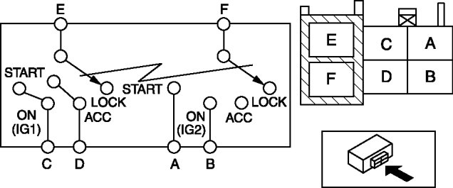 - If not as indicated in the table, replace the ignition switch.