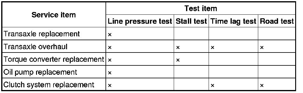 30. Perform the following test according to the service item. Mechanical System Test Road Test