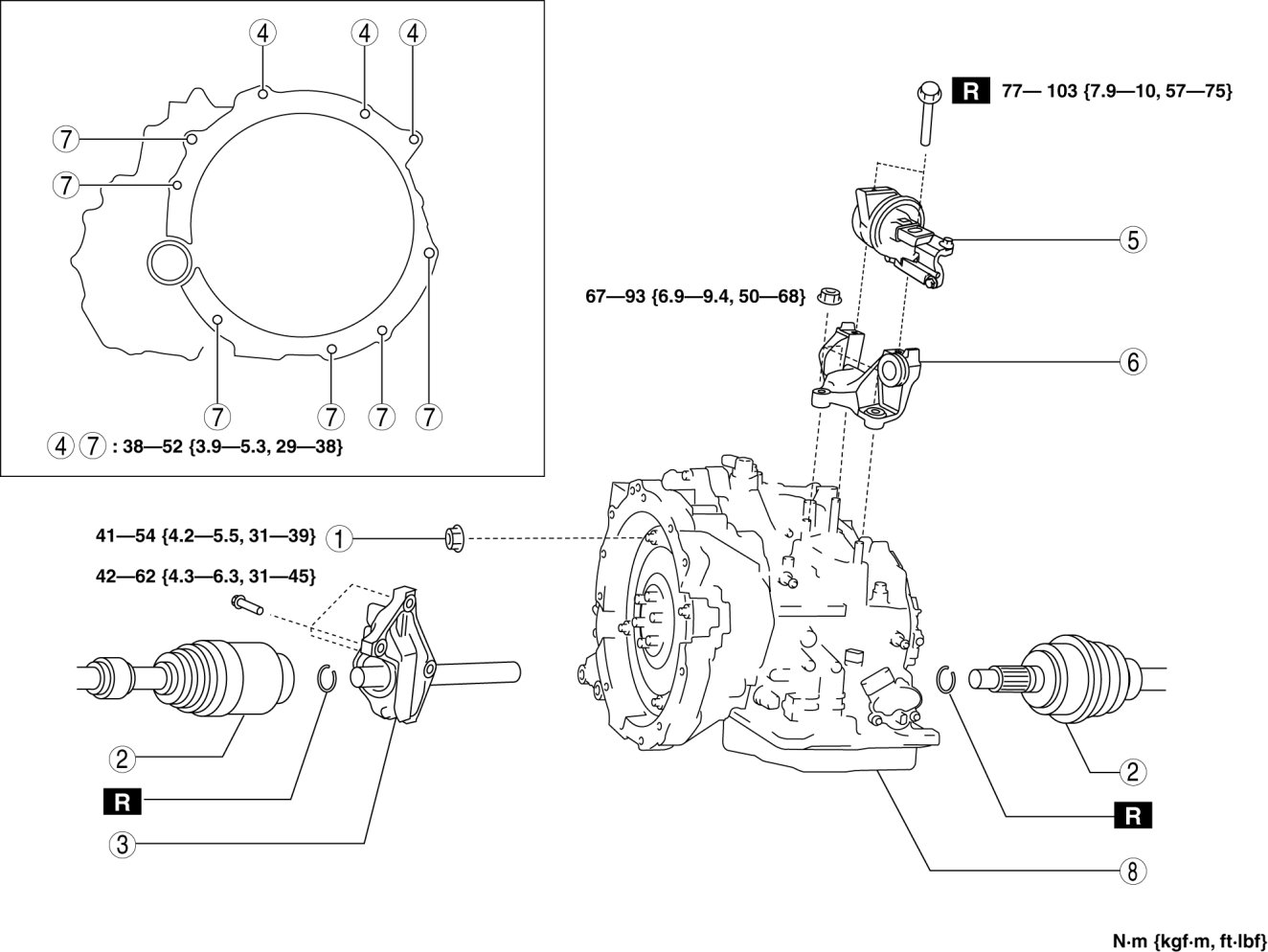 - 77-103 Nm {7.9-10 kgf-m, 57-75 ft-lbf}
