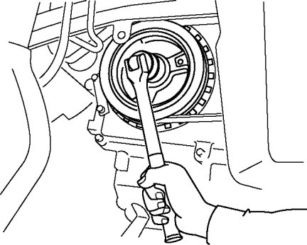 1. Hold the crankshaft pulley to prevent drive plate from rotating.