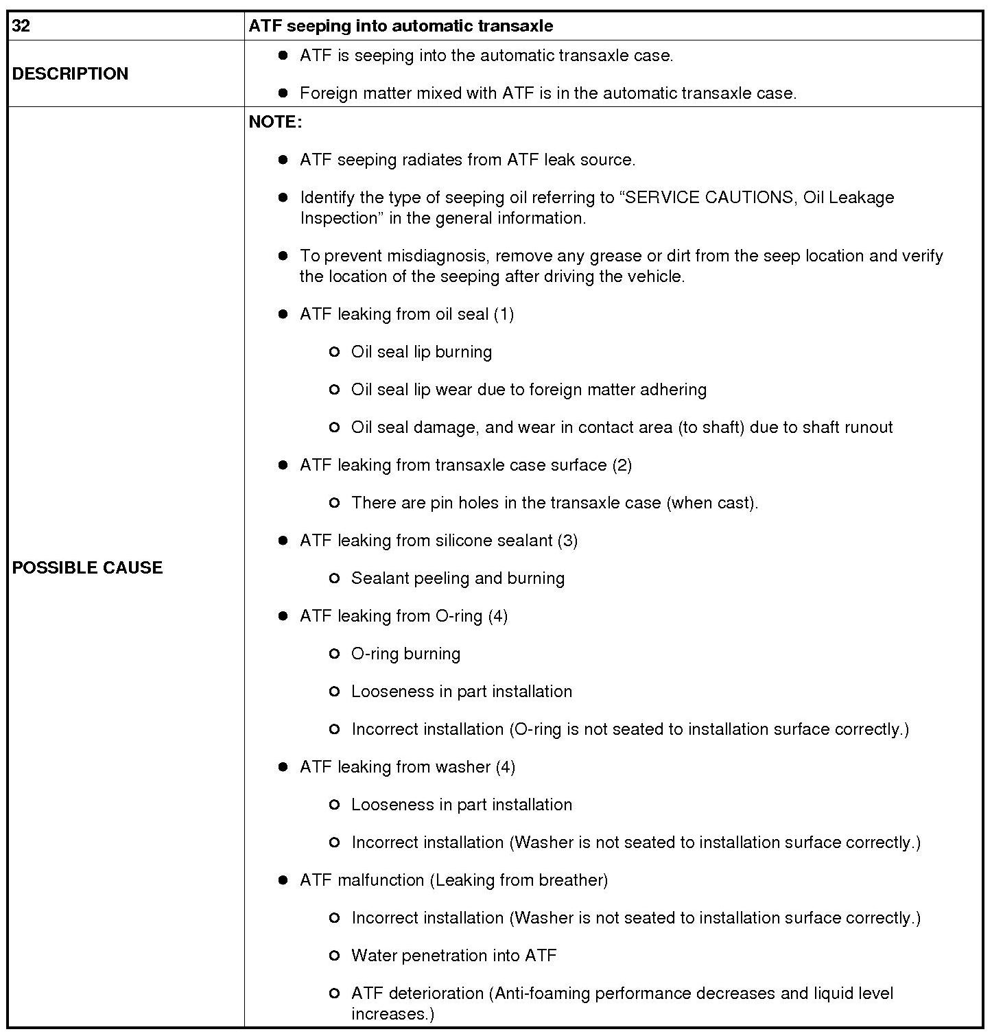 No. 32 ATF Seeping Into Automatic Transaxle