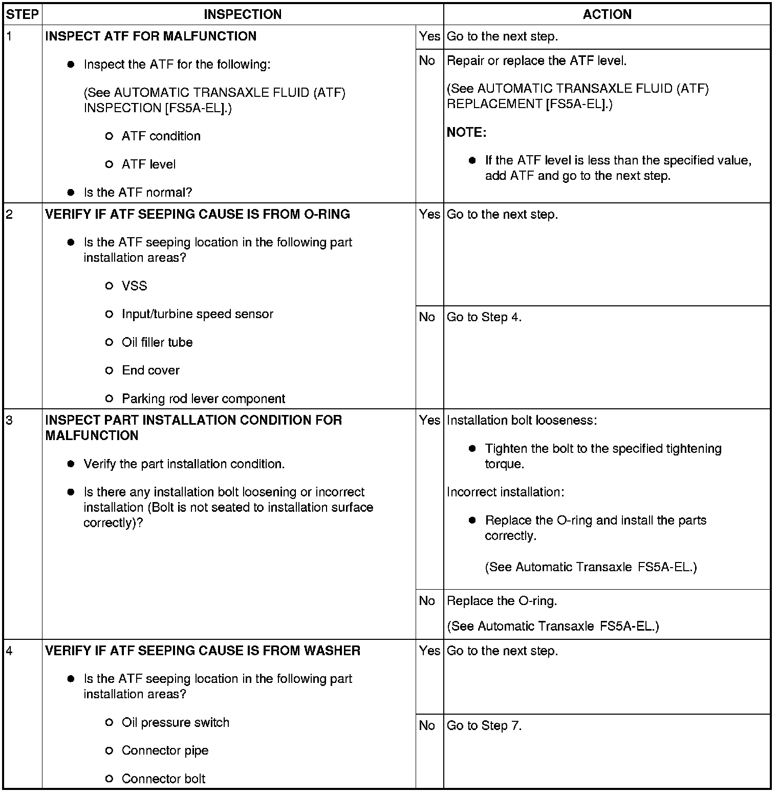 NO.32 ATF SEEPING INTO AUTOMATIC TRANSAXLE [FS5A-EL]