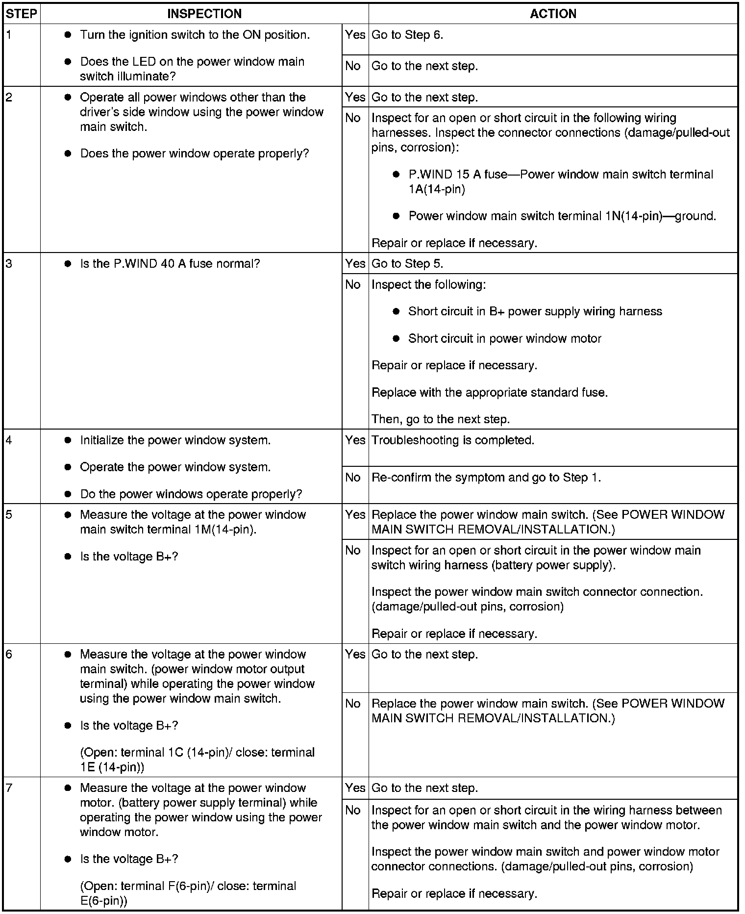 No.2 THE DRIVER'S SIDE POWER WINDOW IS INOPERATIVE [POWER WINDOW SYSTEMS (WITHOUT EXTERIOR OPEN FUNCTION)]