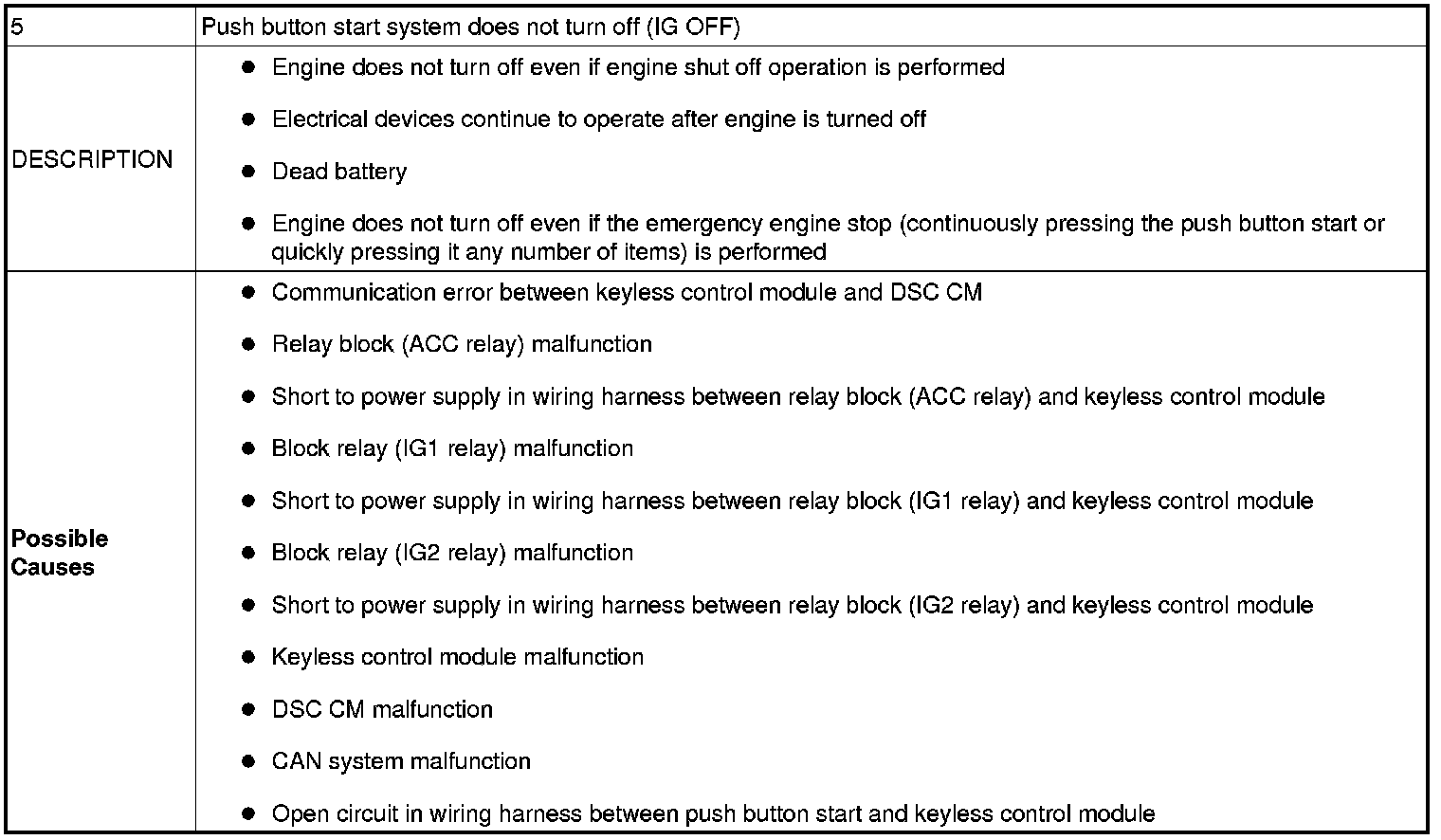 No. 5 Push Button Start System Does Not Turn Off (IG Off)