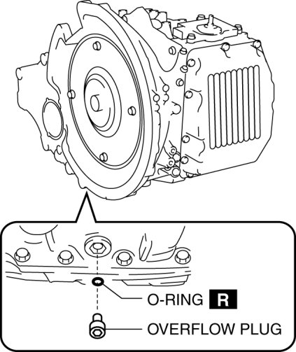 3. Verify the color and odor of the ATF dripping from the overflow plug.