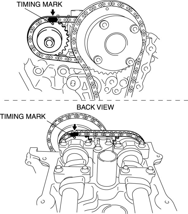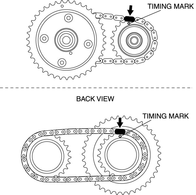2. Mark the timing chain at the position of each timing sprocket timing mark.