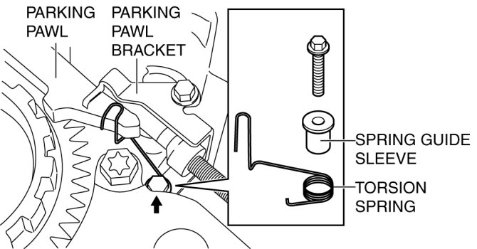 - When installing the pawl return spring to transaxle case, install the parking pawl side of the spring, then install the parking pawl shaft.