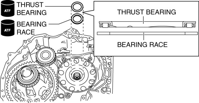 74. Apply ATF to the bearing race and the thrust bearing.