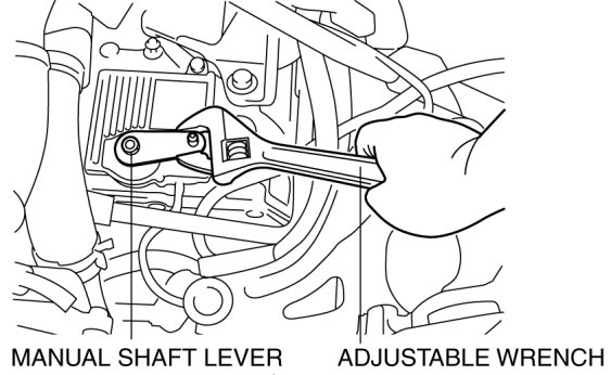 17. Set the adjustable wrench as shown in the figure to hold the manual shaft lever.