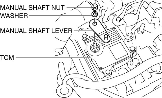 - Do not use an impact wrench. Hold the manual shaft lever when removing the manual shaft nut, or the transaxle may be damaged.