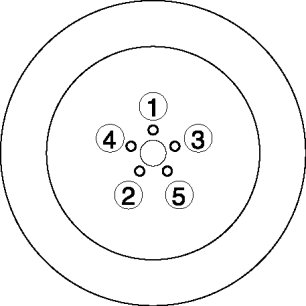 1. When installing the wheels and tires, tighten the wheel nuts in a criss-cross pattern to the following tightening torque.