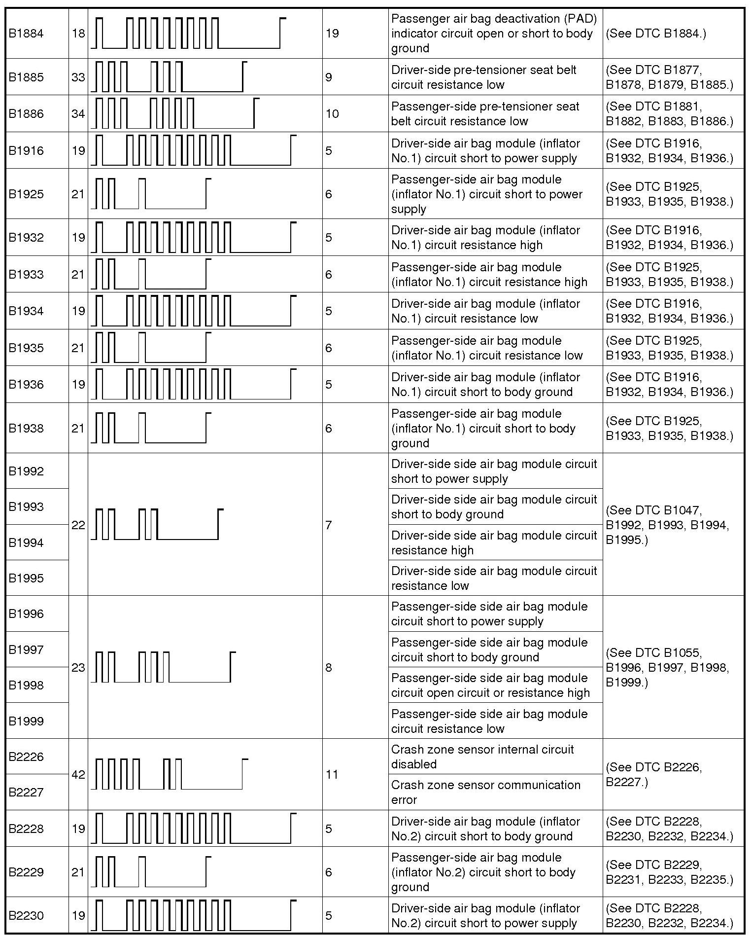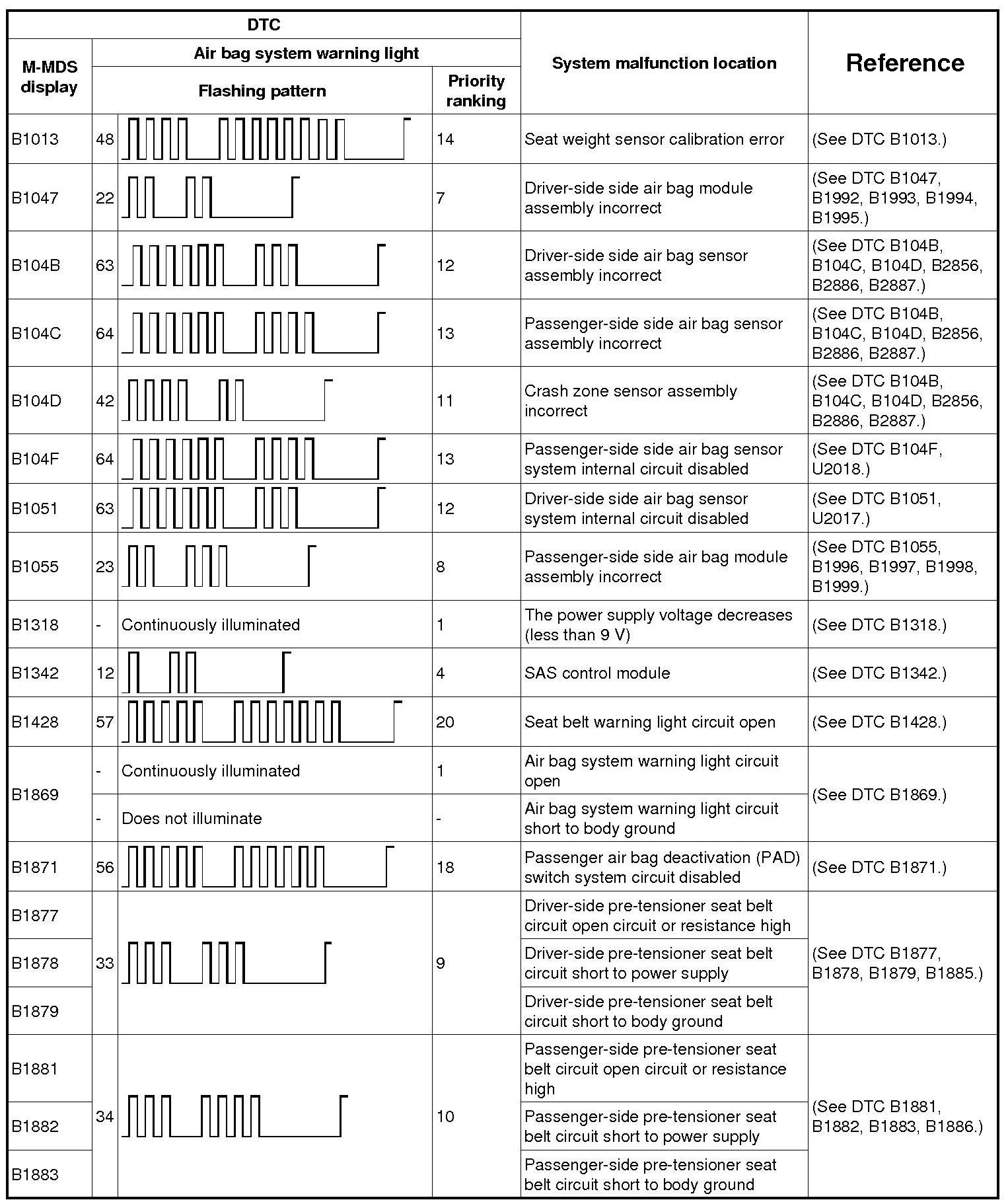 - The air bag system warning light flashes the DTC pattern for five cycles, and then remains illuminated until the ignition switch is turned to the LOCK position.
