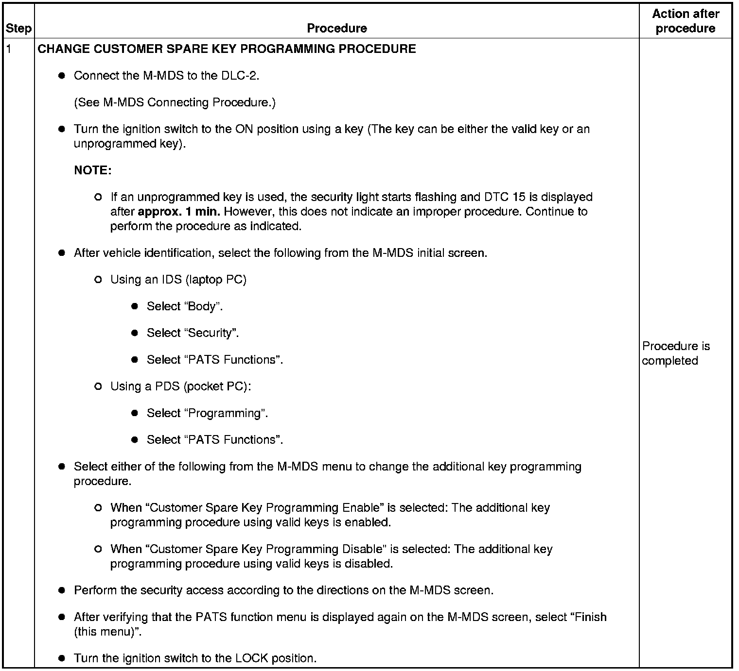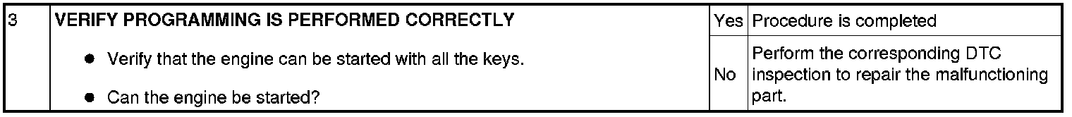 Immobilizer System-Related Parts Service and Programming Procedure Table