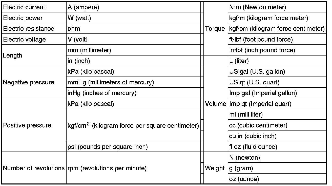 - All numerical values in this information are based on SI units. Numbers shown in conventional units are converted from these values.
