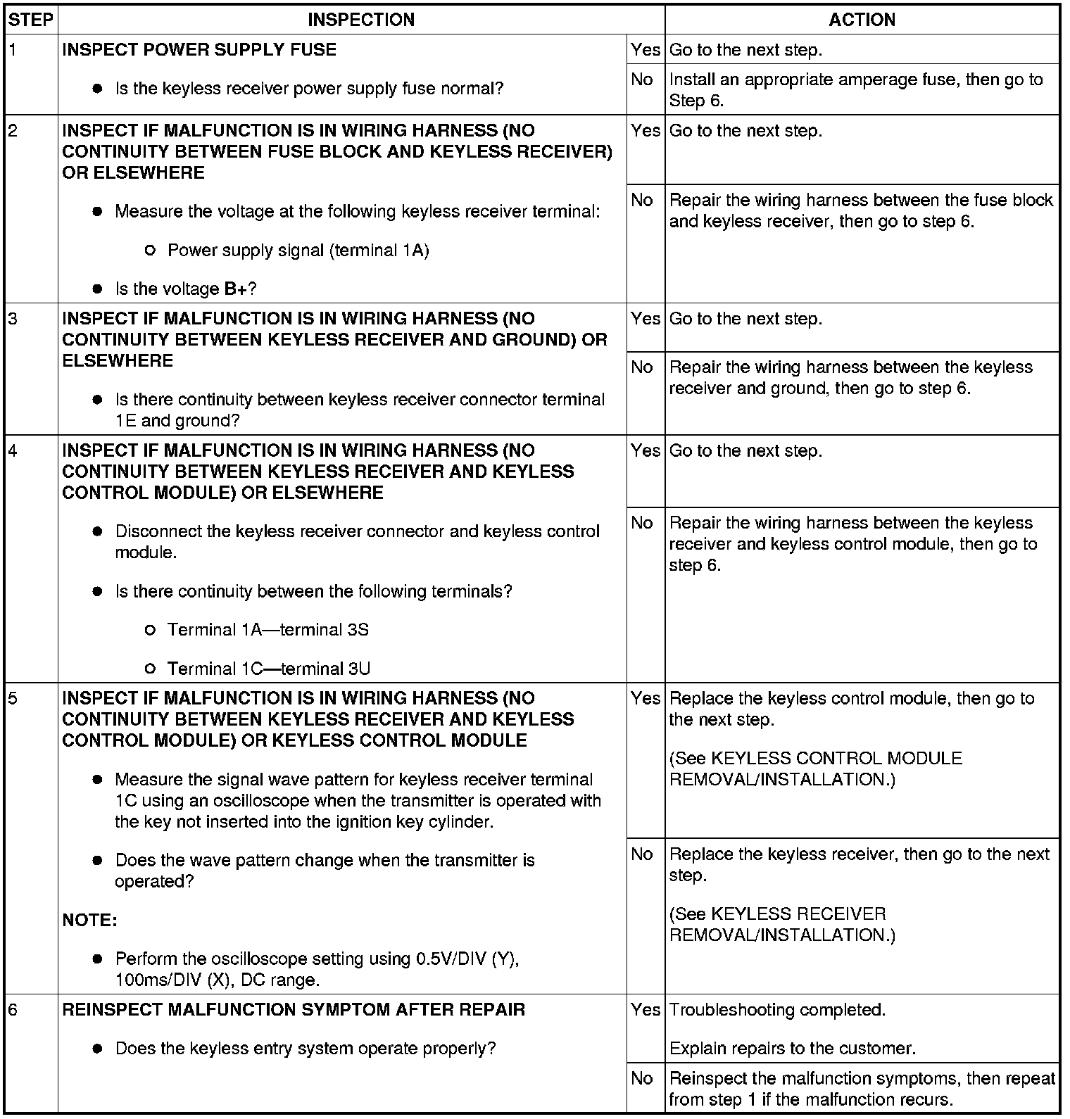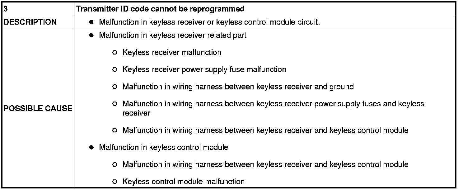NO.3 TRANSMITTER ID CODE CANNOT BE REPROGRAMMED [KEYLESS ENTRY SYSTEM]