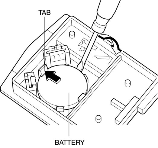 1. Insert a flathead screwdriver into the transmitter notch and remove the key from the transmitter by pressing the tab.