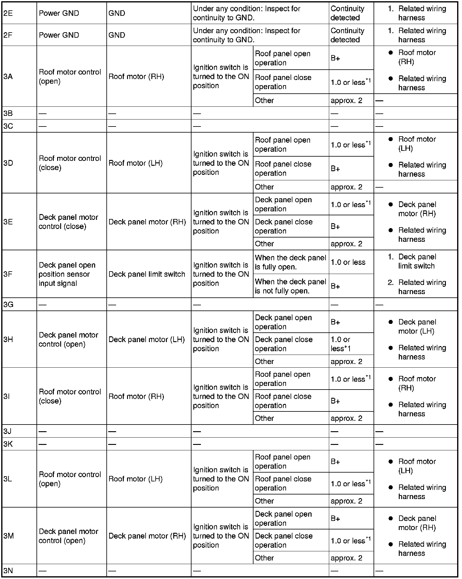 1 Pulse interval varies with the roof panel operation speed.