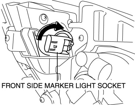 6. Pull the front side marker light socket outward and remove it after rotating it in the direction of the arrow shown in the figure.