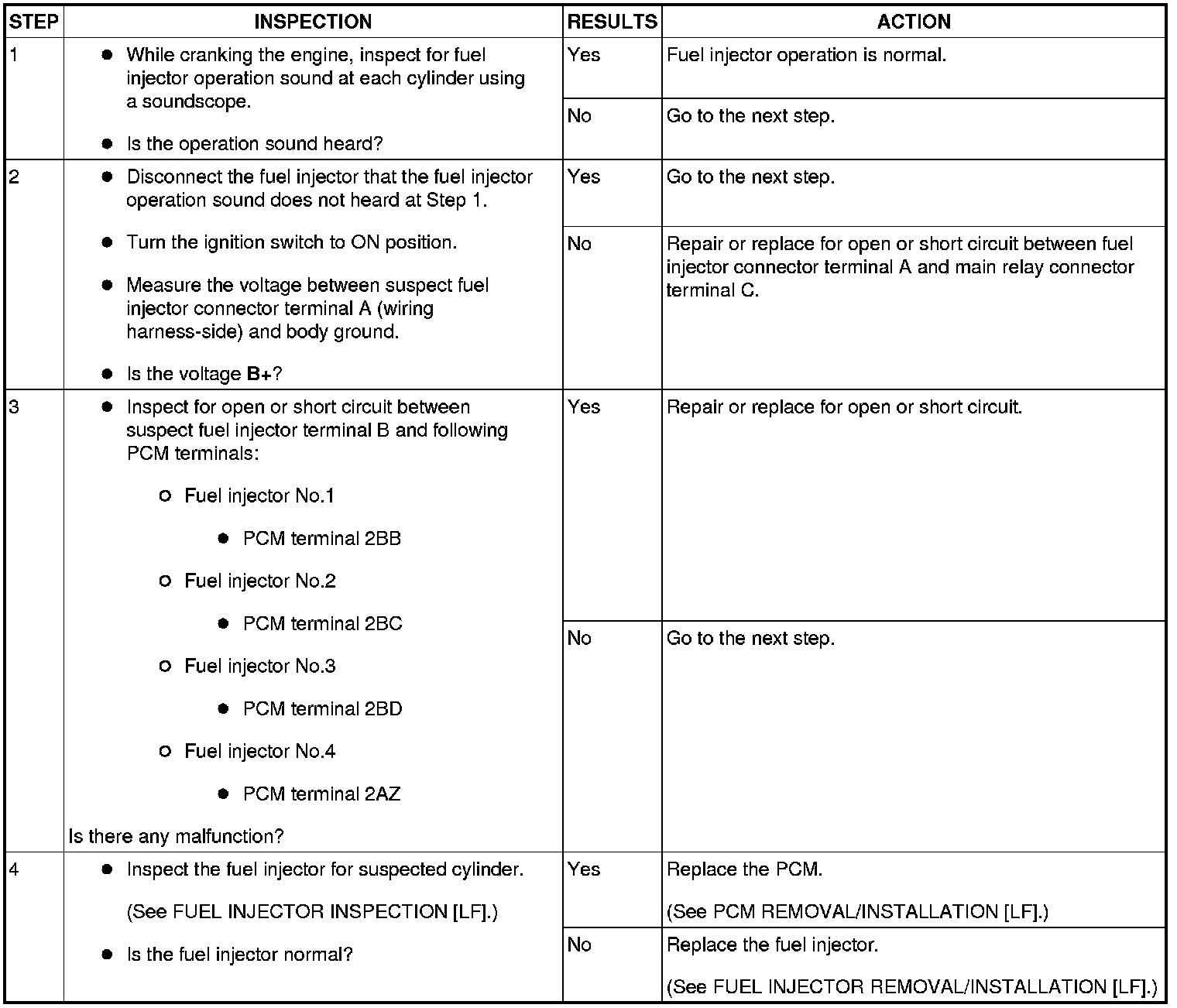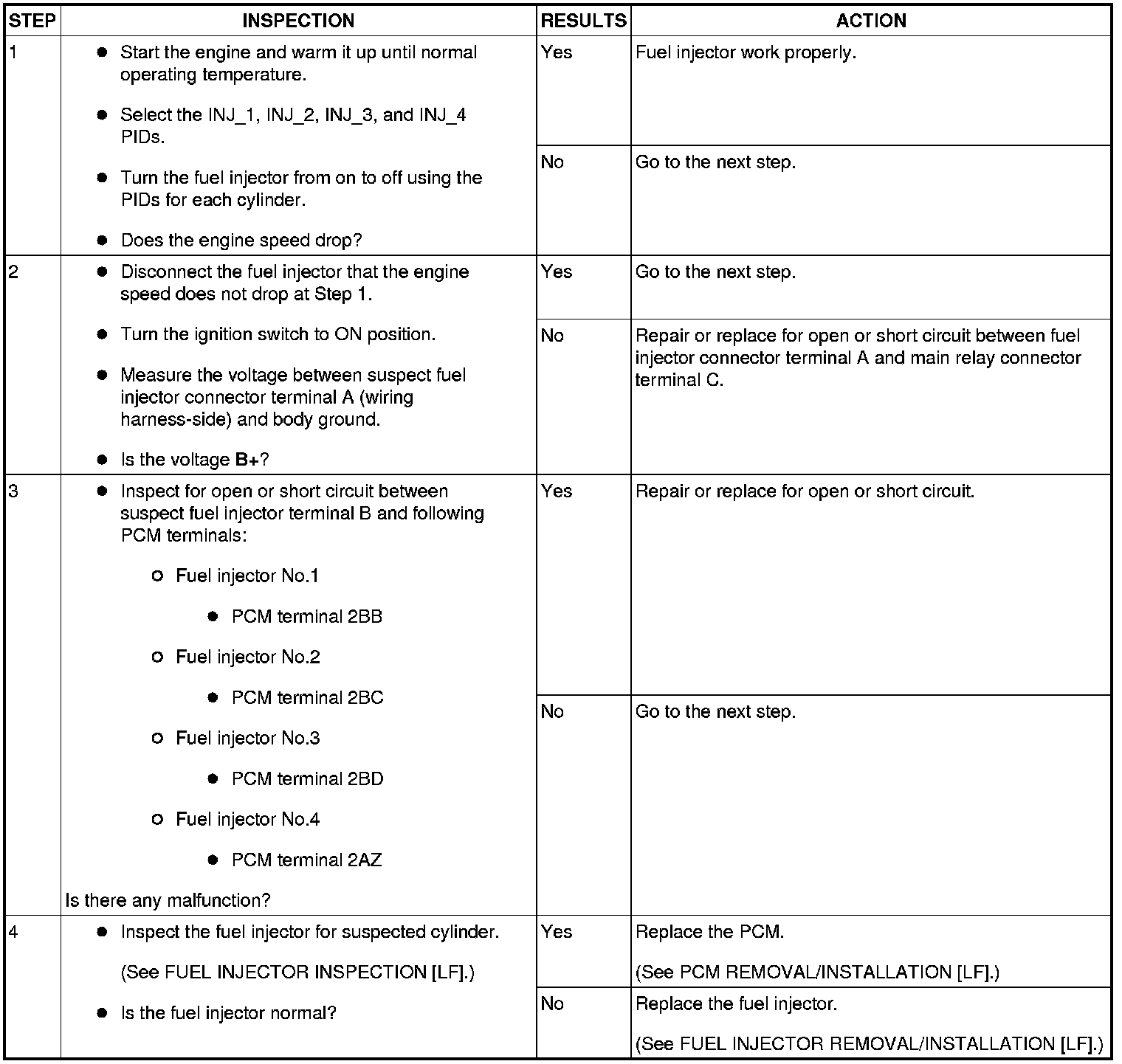 - This inspection has to perform after the Fuel Injector Operation Inspection.
