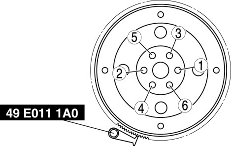 Tighten the drive plate mounting bolts in two or three steps in the order as shown in the figure.