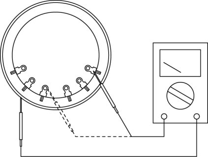 1. Measure the resistance between the slip rings using a tester.