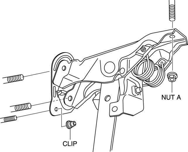 1. Install the clutch pedal component, and then temporarily tighten the nut A.
