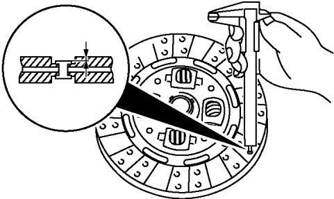 - If it is less than the minimum specification, replace the clutch disc.