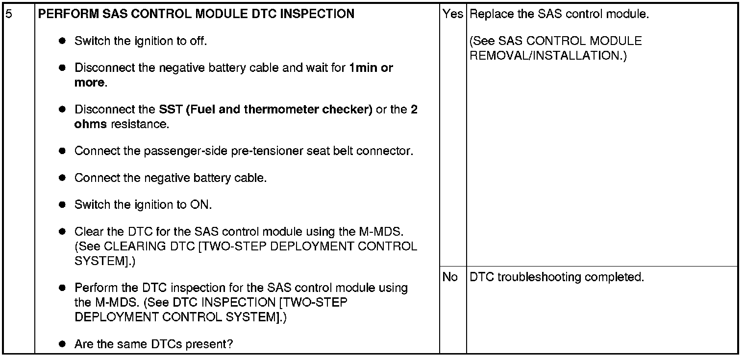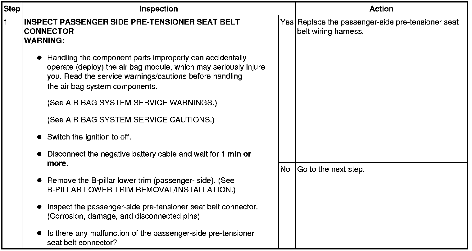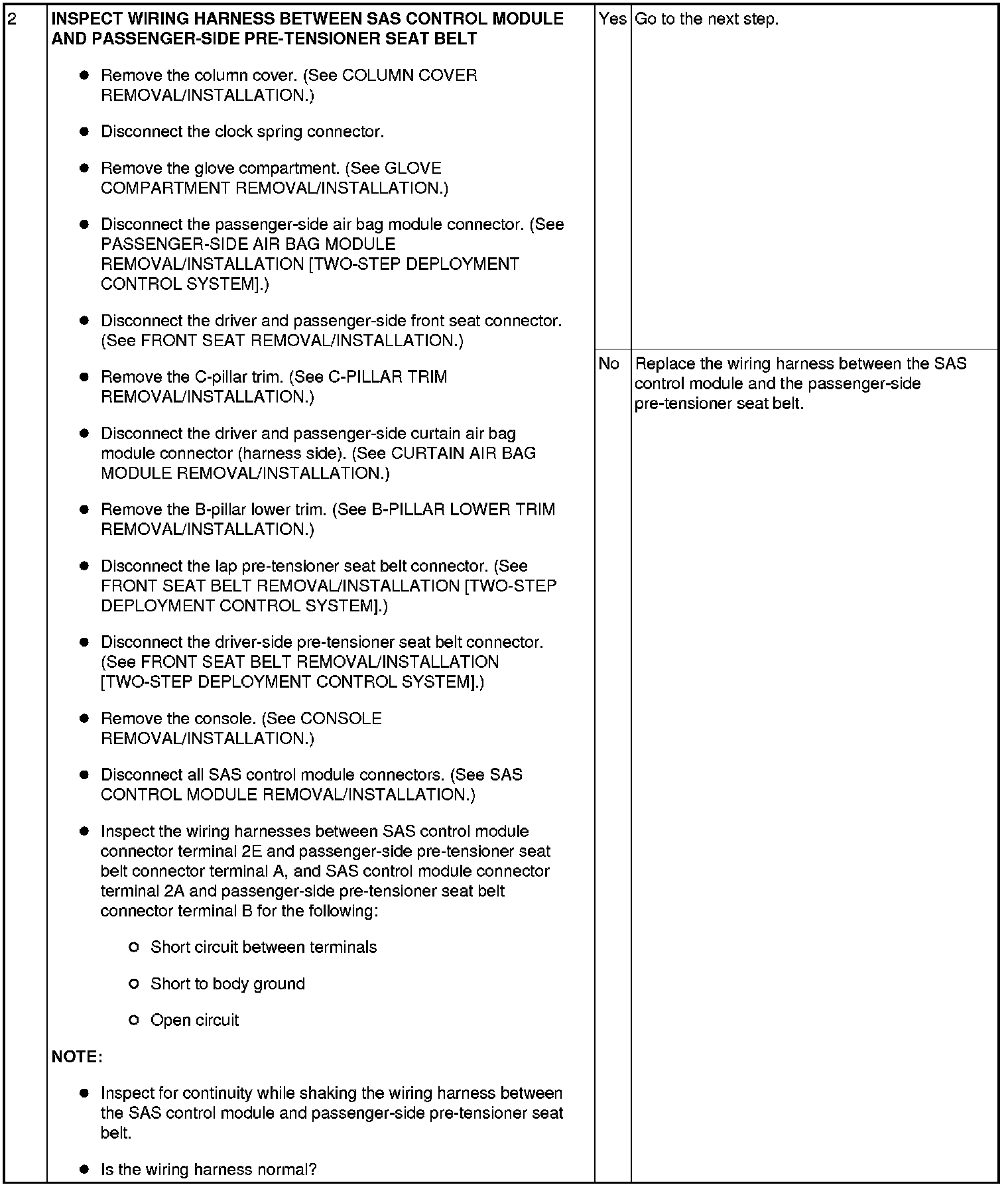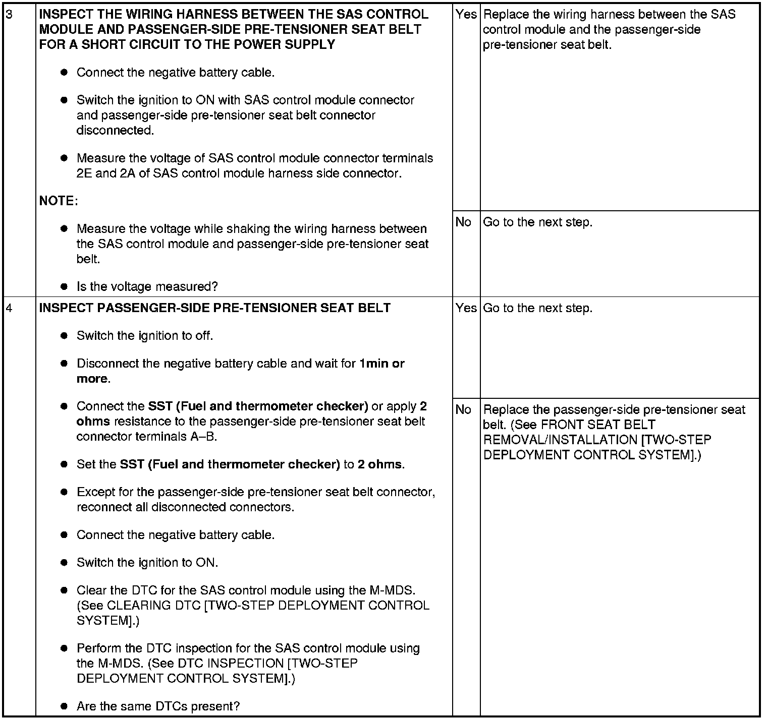 - Wiring harness between the passenger-side pre-tensioner seat belt and SAS control module has a malfunction