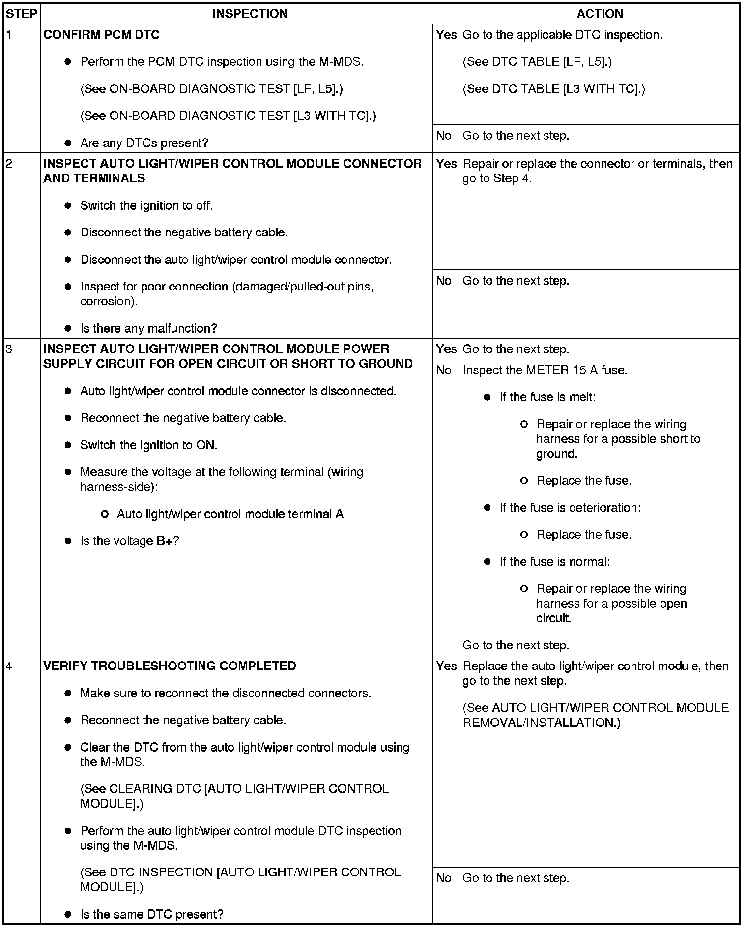 DTC B1318 [AUTO LIGHT/WIPER CONTROL MODULE]