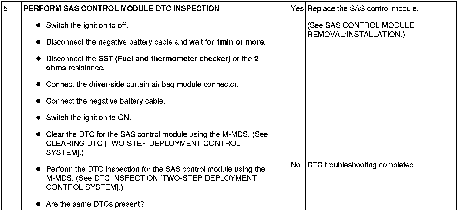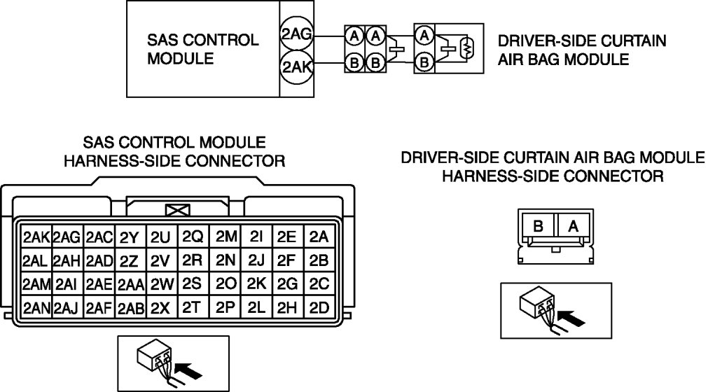 - Open or short circuit or short to ground or short to power supply in the wiring harness between the driver-side curtain air bag module and SAS control module