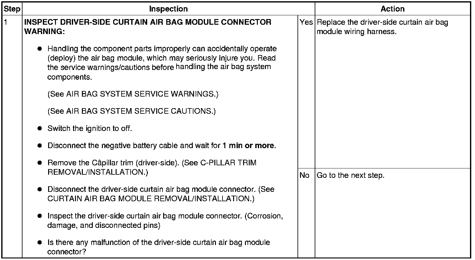 - Driver-side curtain air bag module connector malfunction