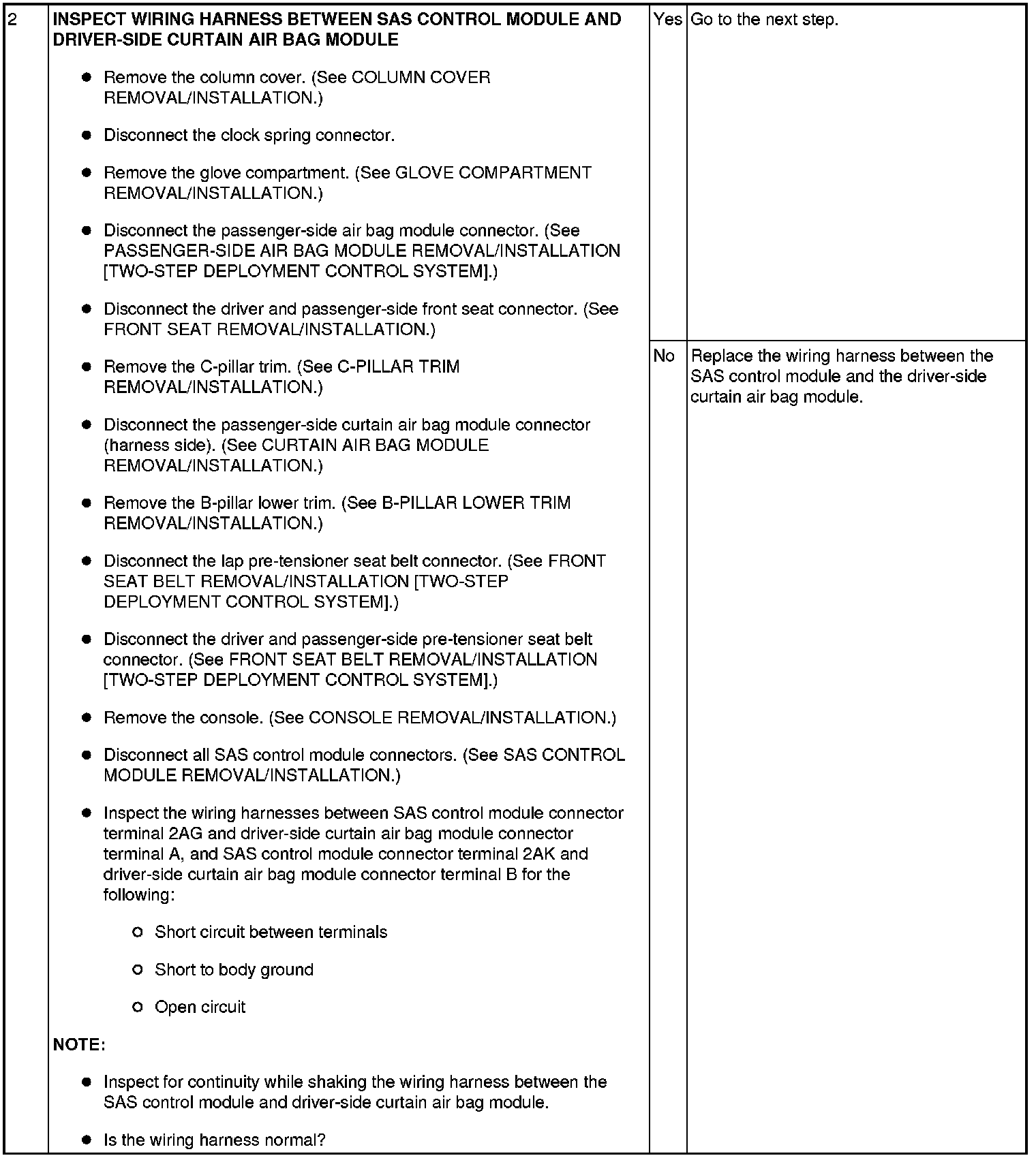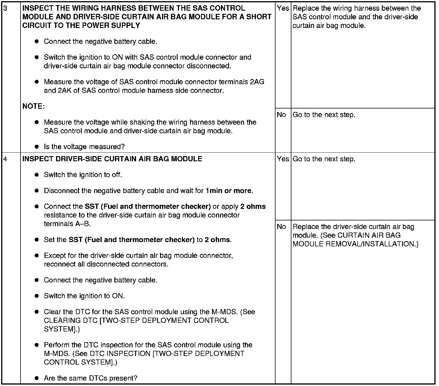 - Wiring harness between the driver-side curtain air bag module and SAS control module has a malfunction