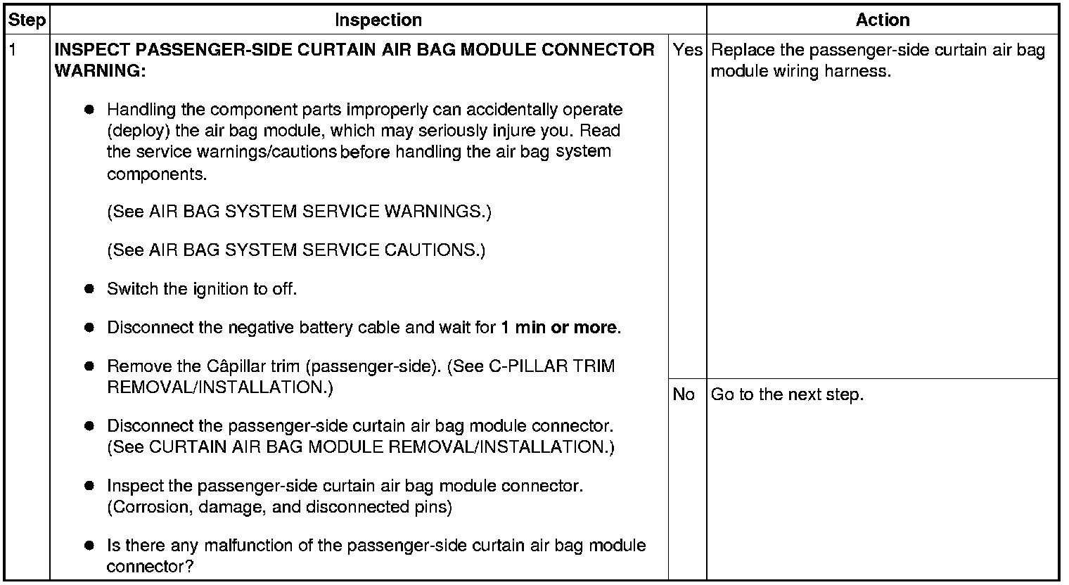 - Passenger-side curtain air bag module connector malfunction