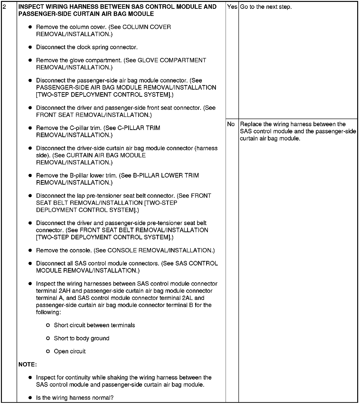 - Wiring harness between the passenger-side curtain air bag module and SAS control module has a malfunction