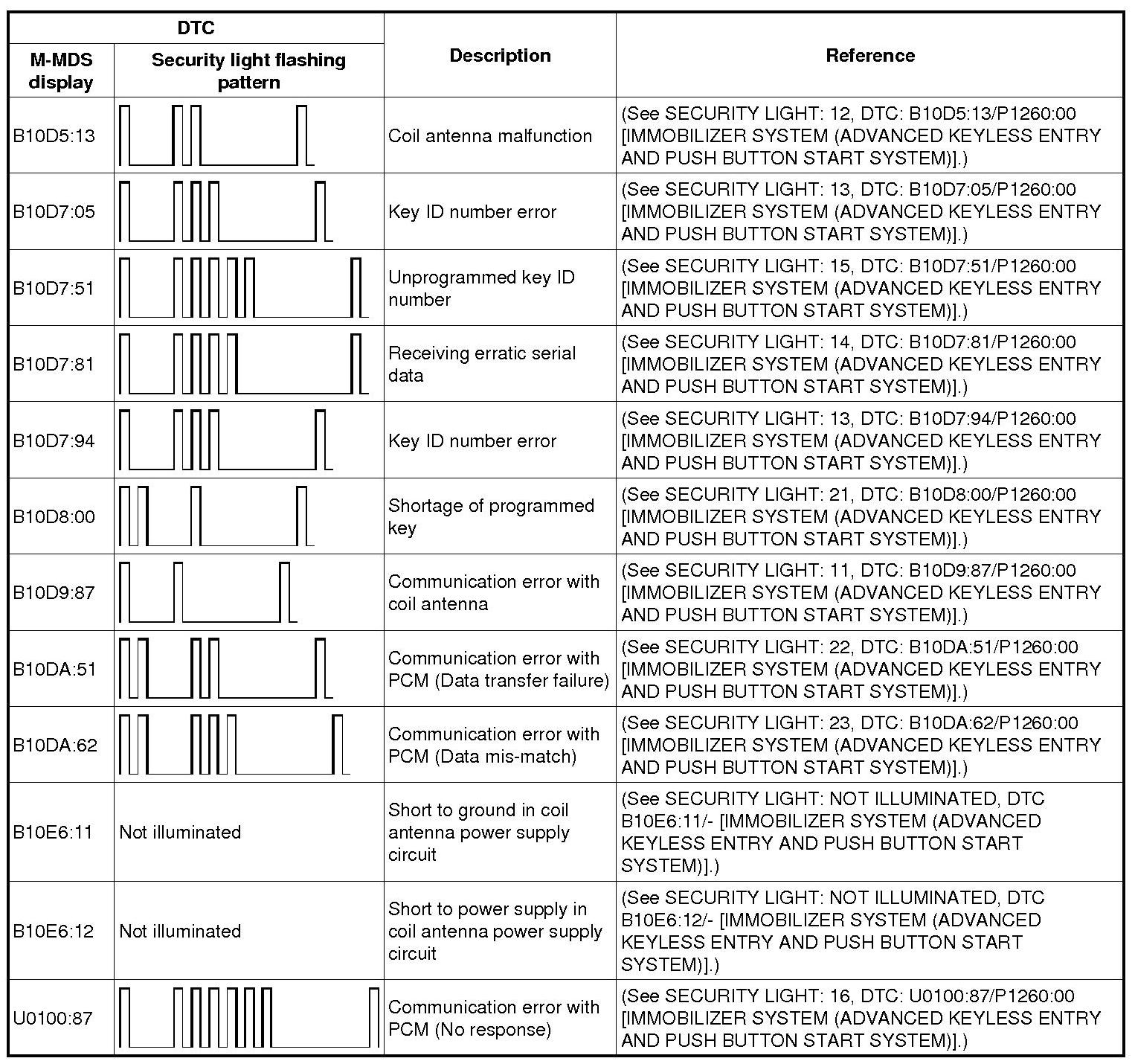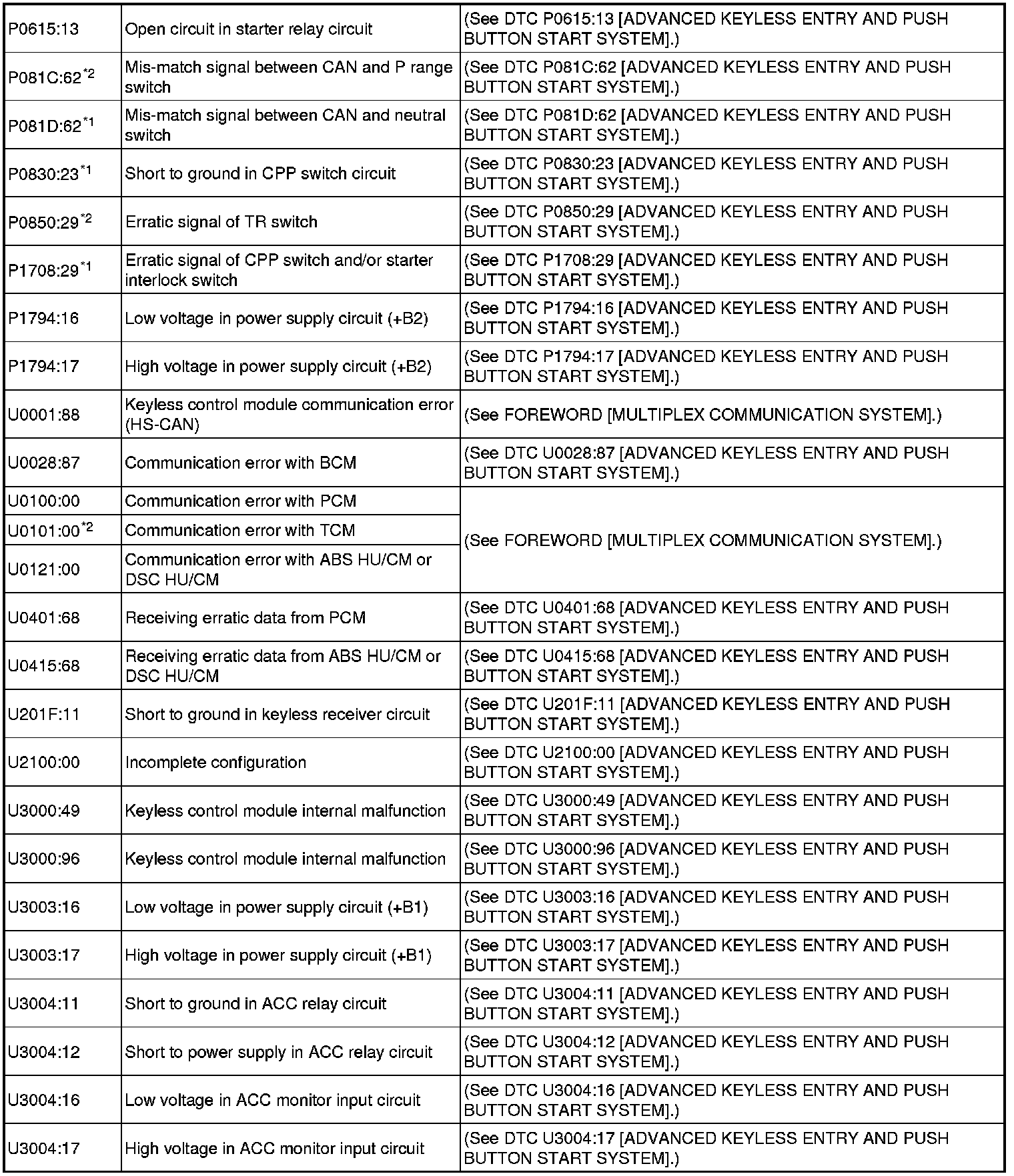 DTC TABLE [ADVANCED KEYLESS ENTRY AND PUSH BUTTON START SYSTEM]