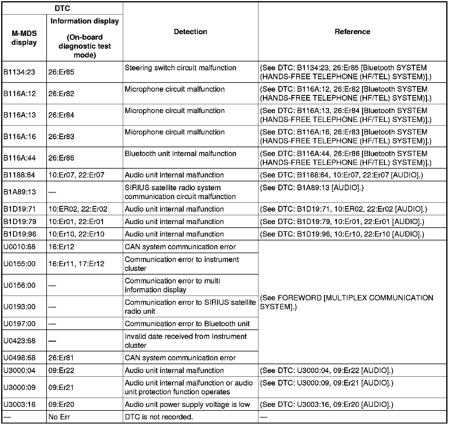 DTC TABLE [AUDIO]