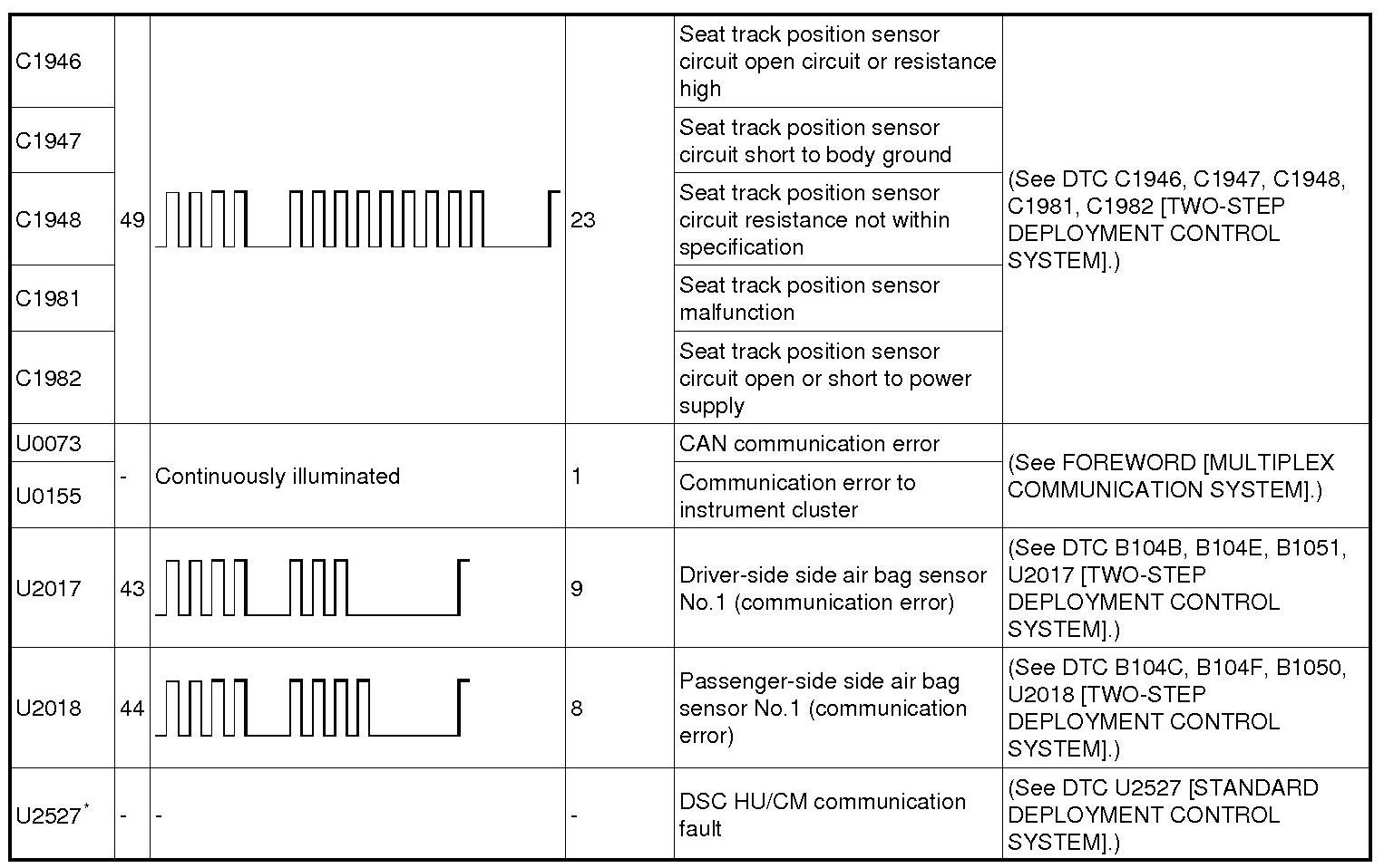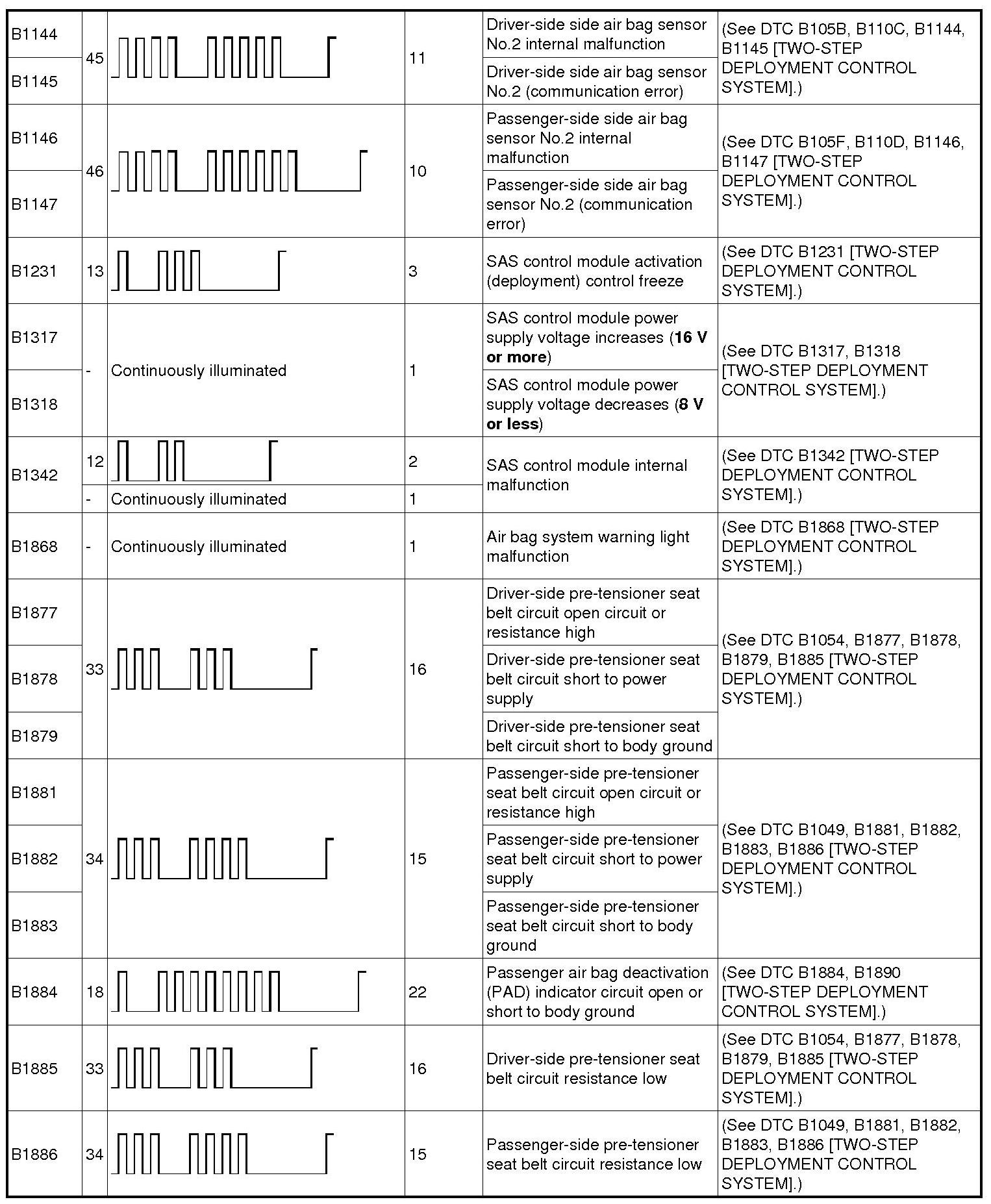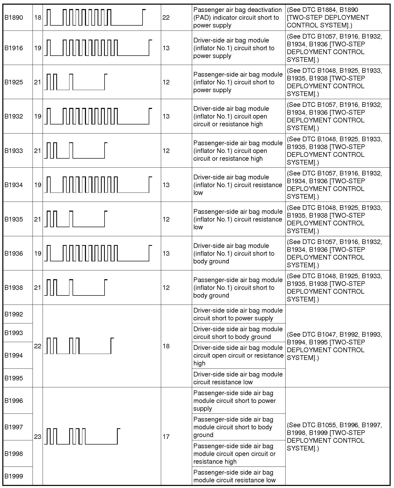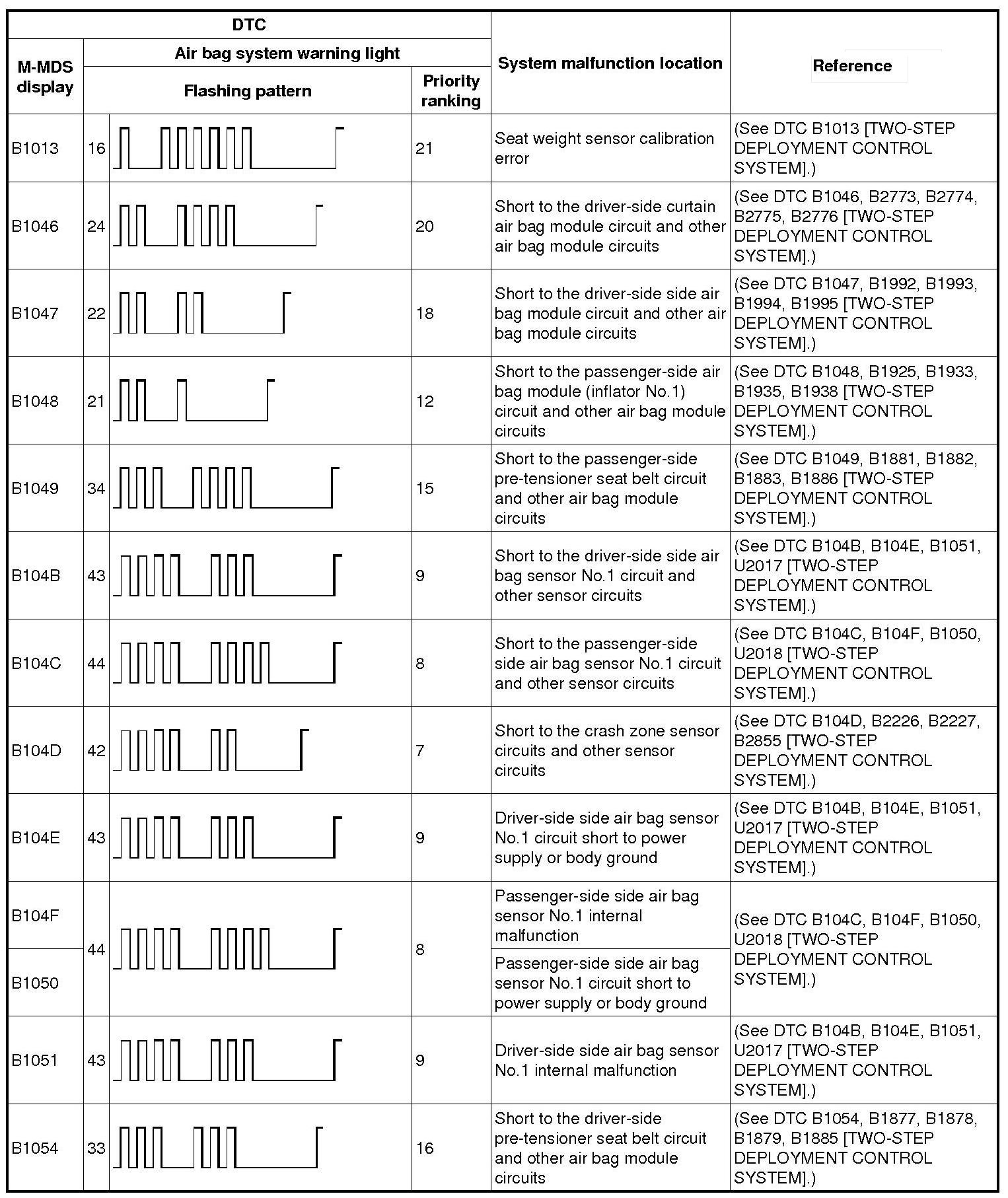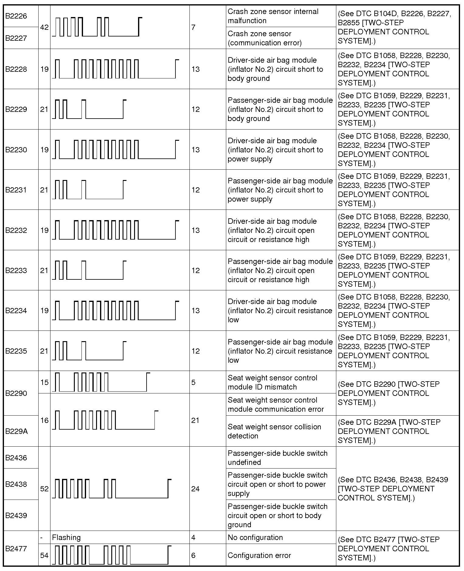 DTC TABLE [TWO-STEP DEPLOYMENT CONTROL SYSTEM]